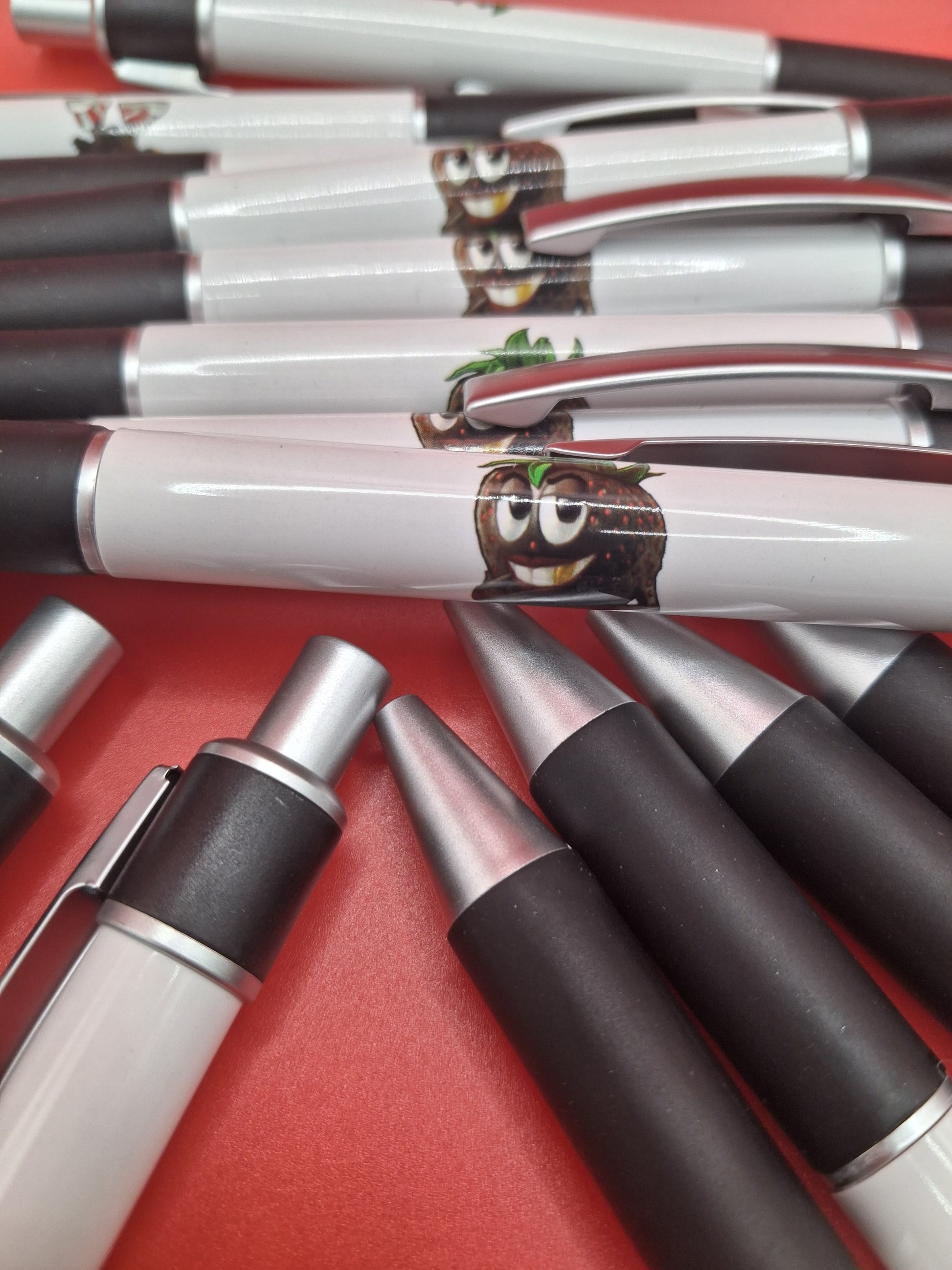 stylo blanc logo la fraise noire,encre noir (prix unitaire)